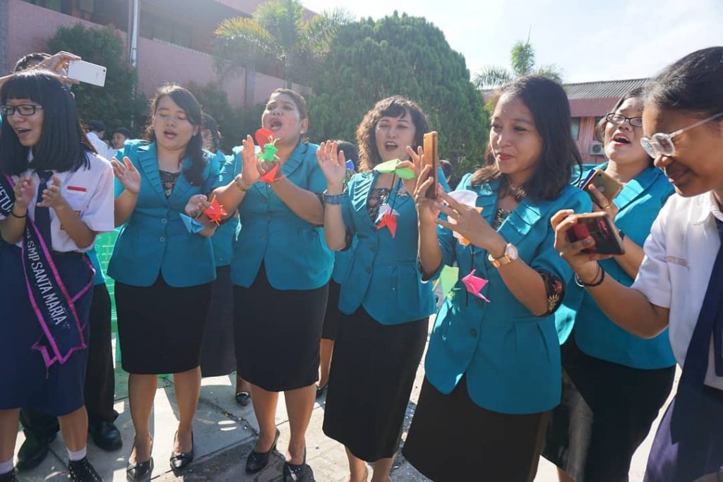 Sudah seperti biasanya setiap tanggal 25 November, OSIS SMP Santa Maria menyelenggarakan kegiatan untuk meperingati hari guru. Kegiatan peringatan hari guru selalu dilaksanakan dengan melibatkan semua anak. Peringatan Hari Guru 2019 dilaksanakan pada hari Senin, 25 November 2019 di lapangan SMP Santa Maria dengan diawali upacara bendera.