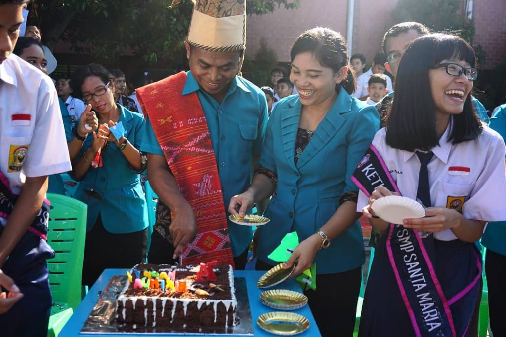 Dalam kata sambutannya, Kepala SMP Santa Maria, Ferdinandus Nipa, S.Pd. sekaligus sebagai pembina upacara membacakan sambutan menteri pendidikan Indonesia. Kepala sekolah mengatakan profesi guru tidak bisa digantikan dengan teknologi. Dalam proses pendidikan terjadi transformasional, bukan transfer ilmu sehingga tidak hanya menghafal namun sampai pada perubahan tingkah laku. Lebih jauh, beliau juga menambahkan, dalam proses pembelajaran terjadi interaksi, komunikasi yang melibatkan perasaan, pemahaman terhadap anak-anak, sehingga bisa memberikan pelayanan belajar sesuai dengan kondisi dan kebutuhan masing-masing anak.