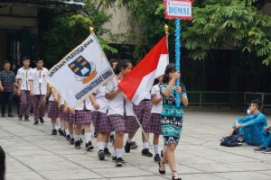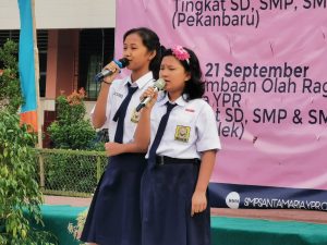 Peringatan hari kesaktian Pancasila pada 1 Oktober tahun ini dengan tema “Pancasila sebagai Dasar Penguatan Karakter Bangsa Menuju Indonesia Maju dan Bahagia”. Dalam penyampaiannya Ibu Lamhot Rotua Sinabang, S.Pd., guru PKN SMP Santa Maria, menekankan penguatan karakter kebangsaan Indonesia. Anak-anak dapat menunjukkan perilaku Pancasila dari hal yang sederhana saja melakukan sikap misalnya menghargai orang lain, terlebih kewajiban untuk menjaga Pancasila.